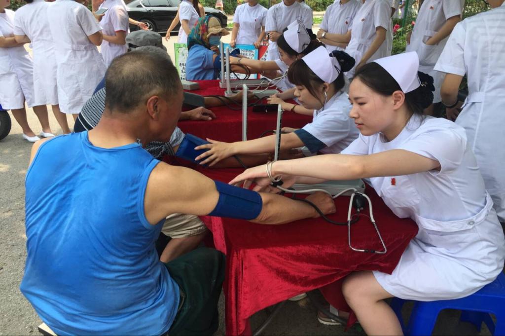 中午12:00点,在院长郭宏、党总支书记张扬、副院长崔仁善的带领下,全体党员走进了福居园社区。学生党员携带亲手制作的“老年人健康生活理念”主题展板,图文并茂地为社区居民普及老年人生活正确作息习惯及老年护理相关知识;教师党员发挥护理专业所长,热情主动地为社区广大居民测量血压,并在测量过程中给予高血压患者生活和饮食方面的细心指导。为了更好地宣传家庭急救基本知识和健康生活理念,91在线