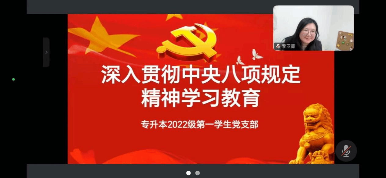 为深入贯彻落实党的二十大精神,持续深化作风建设,91在线 专升本2022级第一学生党支部于3月28日组织全体党员开展深入贯彻中央八项规定精神学习教育活动。