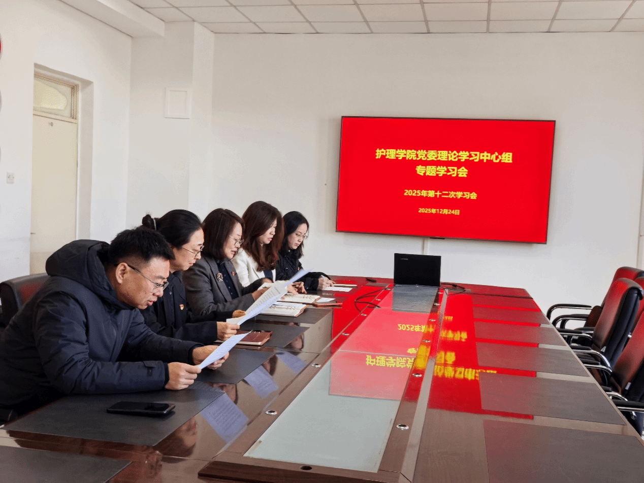 党委召开党委理论学习中心组第十二次学习会。集中学习党章核心要义与习近平法治思想丰富内涵,凝聚起依法办学的强大思想合力,为学院高质量发展筑牢思想根基。护理学院领导班子成员参加学习会,党委书记叶琳主持会议。