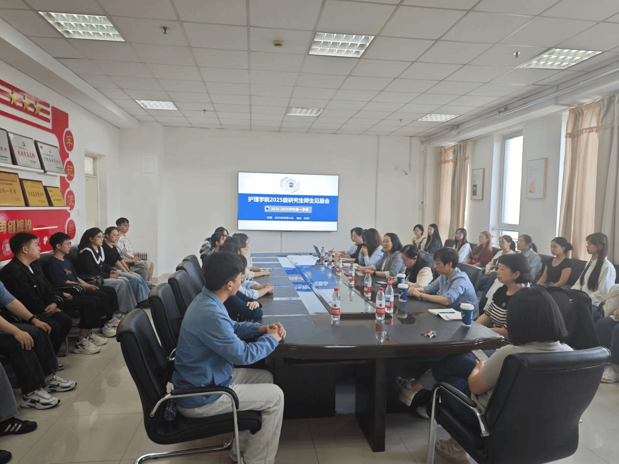2025级硕士研究生新生师生见面会在博学楼B座502会议室举行。此次师生见面主题为“循护理发展之脉,筑研途启航之梦”。会议由学院科研科科长潘汝池主持,郭宏院长、赵冰副院长、仝慧娟副院长、胡静副院长及全体护理硕士生导师出席会议,全体34名研究生新生齐聚现场,共同参与这场意义非凡的入学 “第一课”。
