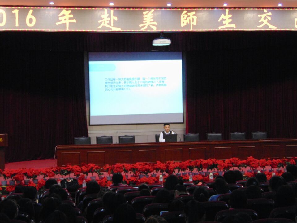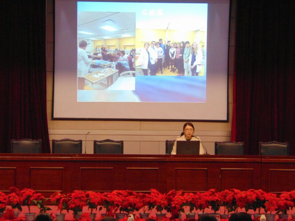 部分教师出席了本次交流会,会议由张蕊老师主持。会上,六位赴美交流同学分别与大家分享了美国医疗体系与医院设施、美国教学环节和课程安排、美国家庭教育工作以及在赴美交流过程中的所见所闻所想等等。充分展示了美国印第安纳卫斯理大学先进的医疗体系及丰富而具有实践教育意义的教学模式。伏蓉老师也就美国印第安纳卫斯理大学课堂教育、医院及福利机构和人文感受做出总结。为我们全方位的展现了美国91在线