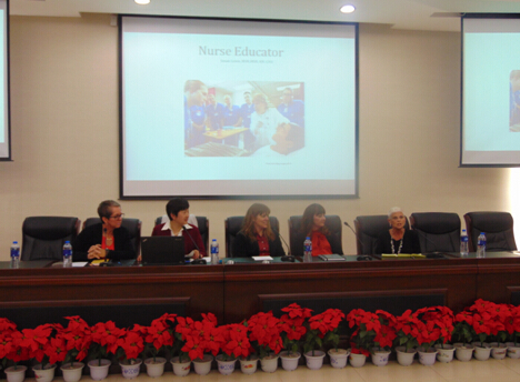 Beth为同学们生动的讲述了美国护士的就业方向及职业发展前景,向同学们介绍了从业护士(NP)的职责和特点。 Beth介绍说,美国的护理人员就业十分广泛,并且有很大的发展空间,拥有护理专业的高级学历不仅能获得更好的就业机会,并能拓展知识面,从而得到更多的锻炼和挑战。3位博士研究生则为同学们分别详细介绍了外科从业护士、手术室从业护士及社区从业护士等的工作环境、工作内容和相关工作程序等。