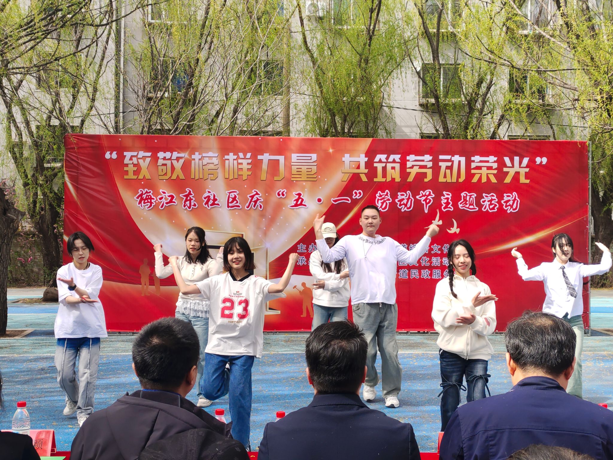 党委组织师生党员代表走进梅江东社区,参与"致敬榜样力量 共筑劳动荣光"惠民文艺演出活动。学院师生通过主持、学生代表发言、舞蹈等多元形式,为社区居民送上节日祝福,展现新时代党员服务群众、奉献社会的精神风貌。