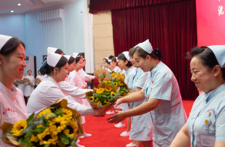 附属医院的老师们赠送鲜花,向白衣天使们表达最真挚的祝福和节日的问候。