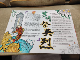 此次活动中同学们积极响应,踊跃参与,通过精心设计、绘制手抄报,表达了对先烈们的崇高敬意和无尽怀念。同学们用心书写着革命先烈的英勇事迹,用画笔描绘出他们坚毅的身影,每一份手抄报都承载着对烈士们深深的敬仰和追忆。活动中,同学们深刻感受到了革命先辈们无私奉献、舍生取义的伟大精神,以及他们为了民族独立和人民解放所付出的巨大牺牲,最终创作出一幅幅体现革命精神的手抄报。